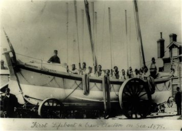 The 1st Lifeboat at Clacton on Sea arrived by courtesy of the Great Eastern Railway which then only came as far as Weeley. Named the Albert Edward it was then taken to the new boathouse which was built on a site donated for the purpose at the junction of Carnarvon Road and Church Road. The Hon. Architect of the RNLI C.H.Cooke, Esq. F.R.S.,B.A., designed the boathouse. The boat supplied was 34 feet long and 8 feet 3 ins. of beam and rowed 10 oars double banked. The Ceremony of dedication was held on 10th July 1878 after the boat had been in service for a few months.