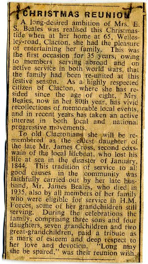 Cross. Photos and information sent by Betty Moore who husband's great grandfather James Cross lost his life on the Clacton Lifeboat Albert Edward in 1884 |