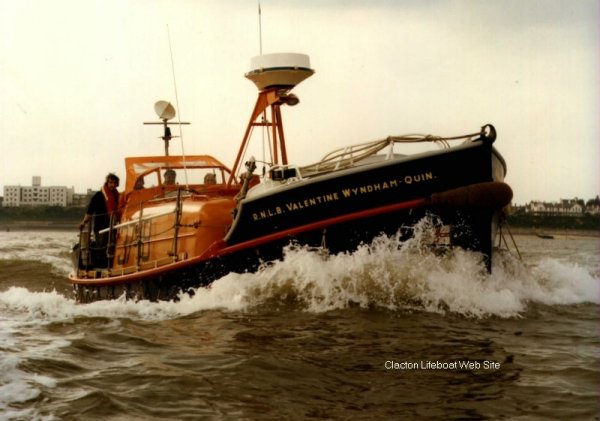 The 37ft Oakley self-righting lifeboat built by Herd and Mackenzie at Buckie in Scotland. Smaller than the previous boat, the Oakley would be able to launch at any state of the tide. Like her predecessor, she was given the name of the chairman of the RNLI committee of management, Valentine Wyndham-Quin. She was due to enter service early in 1968, but for some months was on the slip at Rowhedge Lower Yard while alterations were made to the pier slipway at Clacton to enable her to take over. The Sir Godfrey Baring was meantime based at Brightlingsea, as her predecessor had been at the beginning of the second World War.